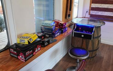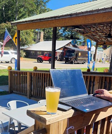 Our journey began in 2020 when we started renovating one of the train cars belonging to the Town of Talking Rock. We celebrated our Grand Opening on January 15, 2021. You can enjoy seating inside the train car or outside on the deck and covered pavilion, which is insulated during the colder months. Bring the kids to play cornhole, board games, or arcade games. Your dog is welcome on the outside patio too.